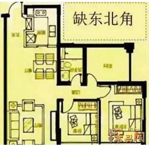 东南为爻,五行属木,意为长女或长女,主文昌。如果这里缺角,对家里大女儿学习不好,孩子情绪波动大。可以摆放一对木雕独角兽或木雕鸡,或者贴上绿色大字或墨绿色太极图,或者摆放圆形绿色盆栽,最好是木本植物。悬挂龙画或放置木制或陶瓷龙。