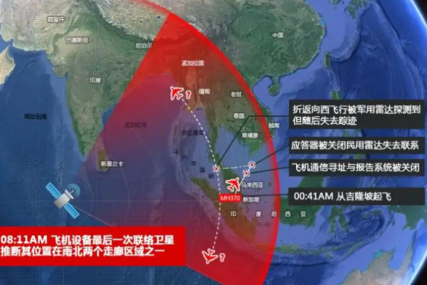 马航高层在3月8日9点表示,mh370的航班配备了足够飞行7个小时的燃料,他们现在可以确定飞机上的燃料已经耗尽。3月10日,中国使用10颗卫星参与了搜救。国际海事卫星组织根据数据计算出飞机的飞行轨迹。数据显示,飞机消失后向南或向北飞行了约6个小时。但直到今天,mh370失踪的真正原因还没有调查清楚。