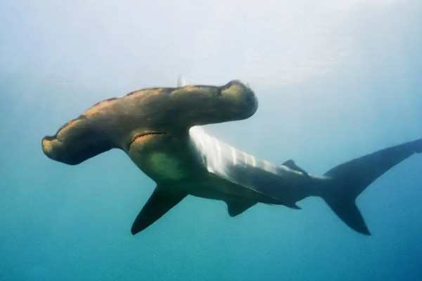 锤头鲨就像水下的翅膀,这有助于它在水中游泳。分布在它头部前方的化学传感器、电子传感器和压力传感器也有利于锤头鲨的生存,使它能迅速确定猎物的方向和速度。锤头形状特殊,被认为有舵的作用。与普通鲨鱼不同,锤头鲨的嘴很小,牙齿很薄,但非常锋利,可以轻松撕掉猎物。
