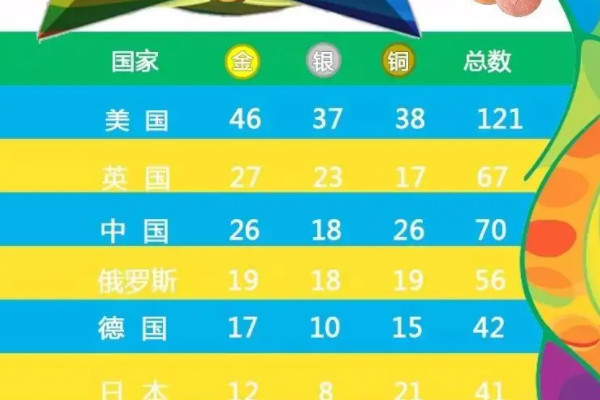 2016年里约热内卢奥运会,中国获得26枚金牌,位列世界奖牌榜第三。