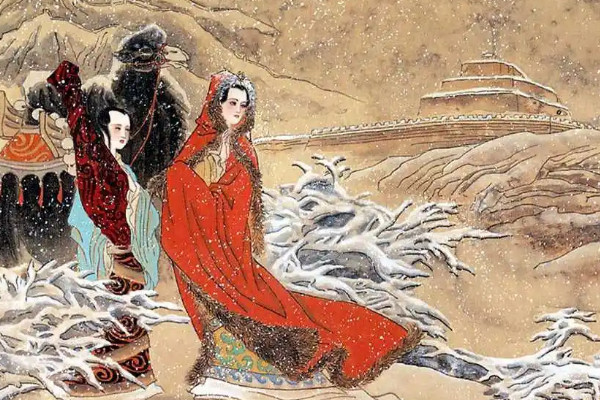 这个宫女的名字叫王昭君。当元帝告别时,她发现王昭君美丽而端庄。她很想留在宫里,但是作为天子,他不能食言。告别后,他很沮丧。经过调查,他才知道王昭君在宫中的画是被人故意污损的。元帝非常生气,并立即处理了画家。王昭君晚年把中原的文化传给了匈奴。
