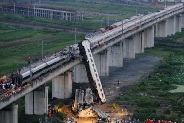 2011年7月23日20时30分,甬温线浙江温州境内发生一起特别重大铁路交通事故。北京南站至福州站D301次列车与杭州站至福州站D3115次列车发生追尾。这起事故确认6节车厢脱轨,造成440人死亡,172人受伤,列车中断32小时35分钟。
