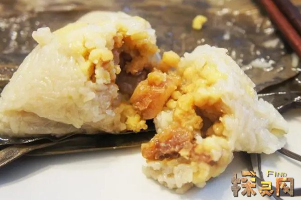 蛋黄是一种非常受欢迎的粽子。以腌制的蛋黄、鸭蛋黄、鹅蛋黄为原料,加入一些耗油、酱油等简单调料。然后把蛋黄包在粽子中间,煮熟的蛋黄味道会渗入糯米,吃起来不会腻。