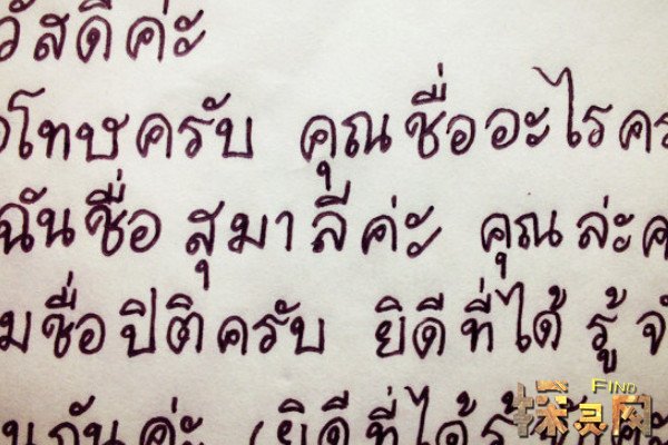 泰语属于音韵文字类型,700多年来由蒙古语和高棉语改革而来。现代泰语有42个辅音和32个元音和符号。使用时,元音可以出现在辅音的前后,也可以出现在辅音的上下。与汉语拼音不同,在泰语书写中,声调符号通常标记在辅音的右上方。