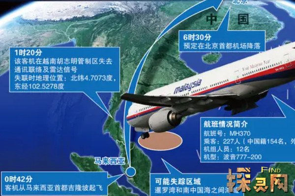 2014年3月8日凌晨0点42分,马航370准备从马来西亚吉隆坡国际机场起飞。计划于2014年3月8日上午6336030降落在北京首都国际机场。机上有12名机组人员,外加227名乘客。凌晨1点20分,管制部门突然与马航370和雷达信息失去联系。