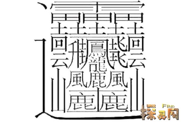 72画的汉字与其说是字,不如说是画,有人称之为符号。首先,从字的结构来说,是由一雨、一悍妇、一龙、二四云、二山、二风、三田、三鹿、六地人组成,指的是雷电。可以理解为霹雳、云浪、诡诈。