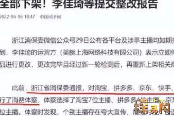 29日,微信公众号浙江省消保委发布了近期需要停播整改的通报,要求李佳琪经营者(美万上海网络科技有限公司)立即停止销售相关商品,并进行库存变动。改动完成后,梗才可以重新上架,所以这也是李佳琪现在还处于停播状态的原因。