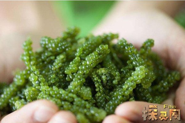 海藻葡萄含有多糖、维生素、胡萝卜素和人体所需的矿物质。是一种低热量、零胆固醇的绿色健康蔬菜。非常适合患有心脑血管疾病和高血压的人食用。还具有美容养颜的功效,深受女性追捧。吃海葡萄的时候,注意不要趁热吃,不然味道会更差。