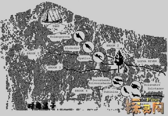 政府派出的调查组赶到时,发现帐篷被人从里面切开了,有八九个人离开帐篷向山脚下的森林走去的脚印。根据调查小组的说法,探险队没有穿鞋子或工具。根据脚印,一些成员赤脚或只穿袜子。换句话说,这些球员在一些特殊的紧急情况下切开帐篷跑了出去,尽管外面的雪有齐腰深。此外,周围没有其他人的迹象,也没有探险队成员被谋杀的迹象。