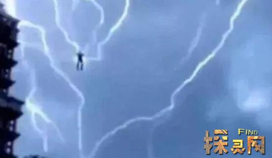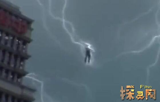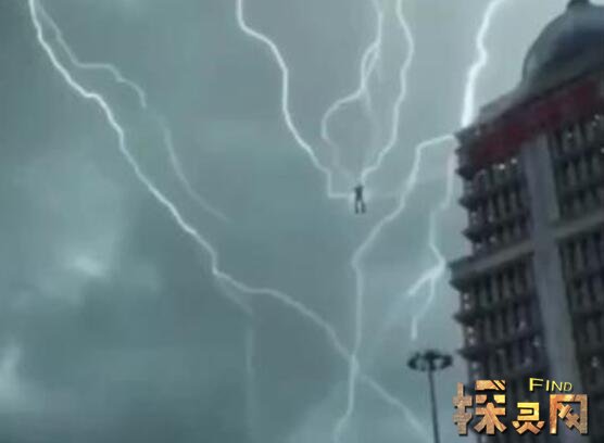 出现这种现象,按照科学解释,人悬浮在空中,脚不着地,按照正常理论,不会被雷击。另外,悬浮在天空中的人和旁边的建筑根本就不是正常比例的人,除非像传说中的几米高的巨人。
