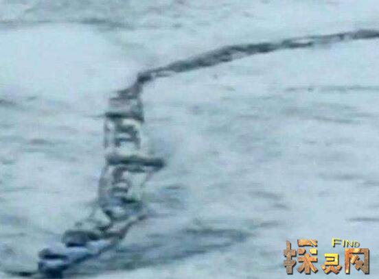 从这段视频中可以看到,在一片广阔的雪谷中,有一条长长的东西在缓缓移动,就像是同一条蟒蛇在河中游动。所以很多人拿它和尼斯湖水怪比较,认为这就是拉加湖水怪。这个怪物的传说其实很久以前就有记载了。比如1345年有人看到并记录下来。