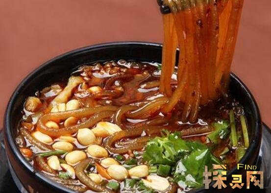 酸辣粉是重庆人必吃的小吃之一。是纯天然绿色食品,被誉为天下第一粉。主食是红薯、豌豆淀粉,配料是油辣椒海椒、醋、肉末。煮熟后吃起来又辣又酸,又香又开胃,具有麻、辣、鲜、香、酸的特点。