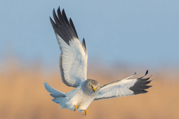 鹞属于鹰科。它很瘦,以老鼠、蛇、青蛙和鸟为食。其体长约50厘米,约有11种。它脸上的羽毛是面对面的,大部分生活在沼泽或高草丛中。