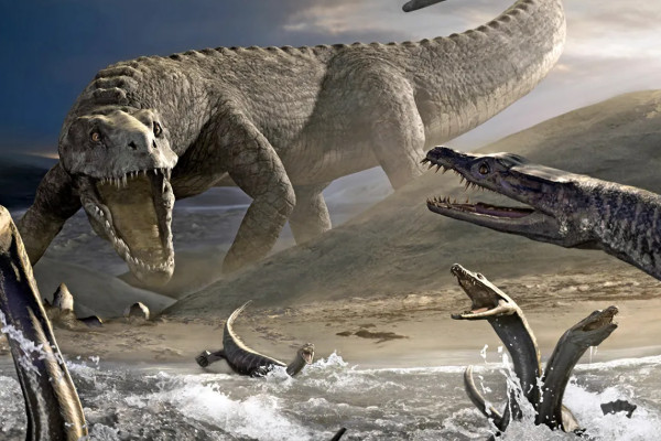 不一会儿,植物被烧光,水分被蒸发,到处都是死去的动物,整个地球就像一个真正的地狱。短时间内,地球上75%的物种灭绝,90%以上的恐龙在地球上彻底消失。但陨石撞击后,一些小动物活了下来,在洞穴和裂隙的保护下,艰难地活了下来。