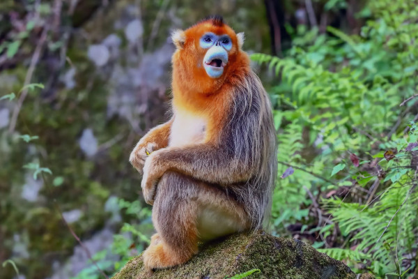川金丝猴是中国特有的珍贵动物,生活在高山密林中。是国家一级保护动物。它的体型在猴子中算中等,脸是浅蓝色的,毛是金色的,尾巴很长。仅分布于湖北、陕西、甘肃、四川,食性杂,以植物为主。冬天以各种树皮、树皮、苔藓为食。