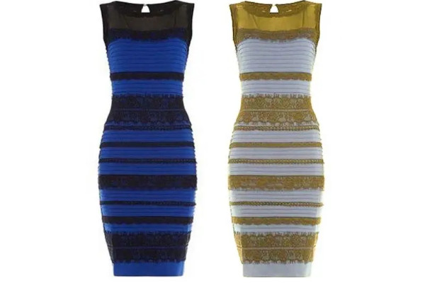 蓝黑礼服配白金和蓝黑是因为环境的变化,与视觉感知有交互作用。很多女士早上看到这件衣服是白色和金色的,等到下午就变成了蓝色和黑色,但是仔细一看又变成了铂金色。视锥细胞和视杆细胞在不同的时间和背景下所处的位置不同,所以感知也会发生变化。