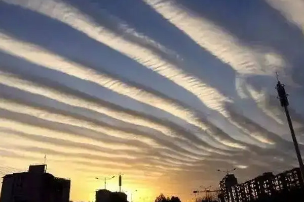 在网上可以看到各种各样的“地震云”,其中高积云或层积云居多,因为这两种云容易形成鱼鳞状、棱状、羊群状、透光状、放射状、豆荚状等奇特形状。加上它们有时出现在傍晚或清晨,染上日落或日出的色彩后,更被视为“天有异象”。