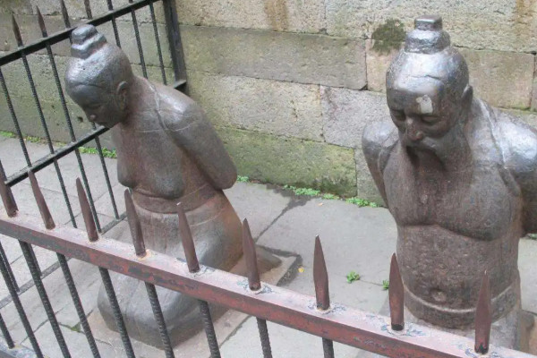岳飞墓前有五尊跪着的铜像。这五尊铜像就是当时迫害岳飞的人。主角是和他的妻子王。但是为什么秦桧和他的妻子是罪人呢?下面让边肖给你介绍一下。