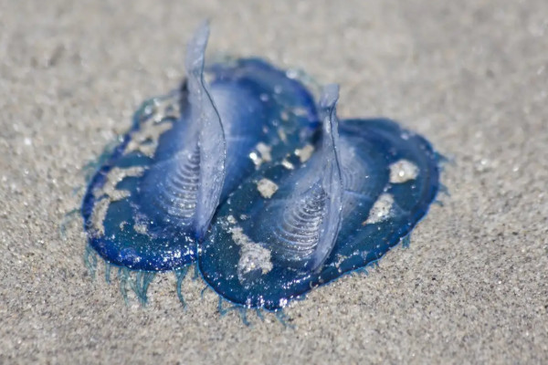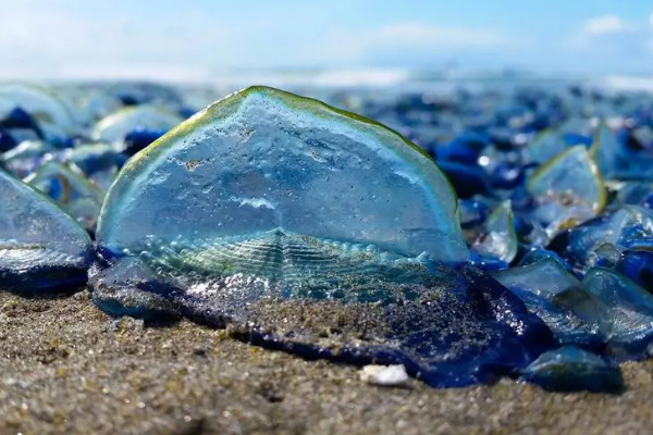 2015年3月,大约十亿只帆水母被冲上了美国西海岸,就像海滩上铺了地毯,看起来就像放气的紫色和蓝色气球,然后出现在加州。这种大规模搁浅并不少见,每年3-6月都会发生。