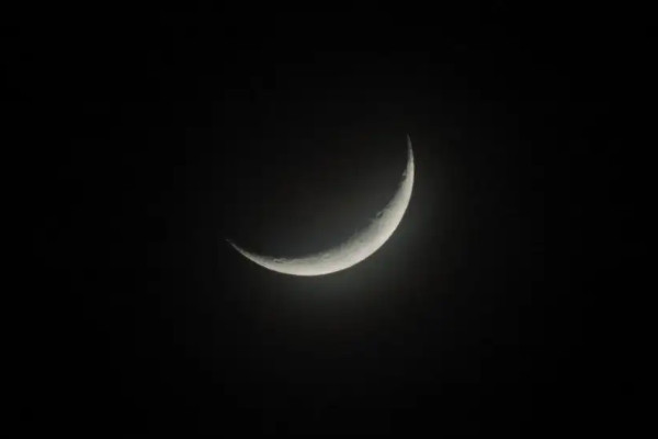 新月过后,月亮会慢慢地绕着地球向东旋转,这样月亮就位于太阳的东边。此时,地球上可以看到镰刀形的月亮,其凸面朝向西方的太阳。我们称之为月蛾。注意,蛾月日出后升,日落后落,所以白天看不到月相,只能在太阳落山后一段时间才能看到。