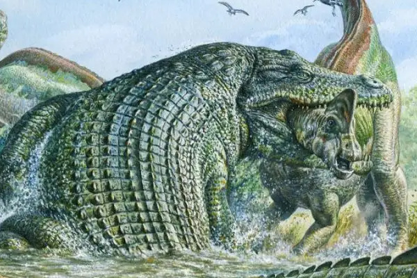 帝王鳄被称为最强的肌肉鳄,所以又被称为肌肉鳄和帝王鳄。它是史前最大的鳄鱼之一。它的身体长度可达10米左右,重量为4.5吨。在那个巨兽横行的年代,帝王鳄几乎是唯一能与恐龙匹敌的生物,尤其是它入水之后,几乎所向披靡。始皇鳄的牙齿和鳞片发现于20世纪40年代至50年代。
