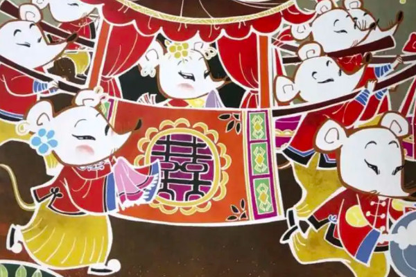 鼠王选择在腊月二十四和一个女孩结婚。结婚那天,全世界都在忙着买年货。外面很热闹,很多人在笑,在玩。然后鼠王就生气了,说:“人家跟我闹一天,我跟人家闹一年。人家吃了不少苦,每次老鼠结婚的日子都不许闹。”