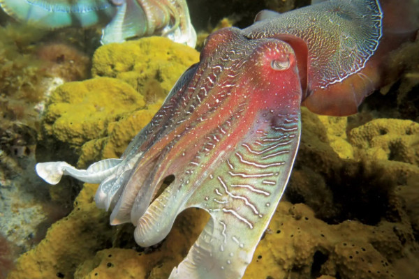 大王乌贼不仅体型巨大,手腕也极其纤细。最长的手腕是其他手腕的2-4倍,头部呈桃形。从远处看像一顶圆锥形的帽子,口腔膜的连接肌丝连接在第4腕的后沿。另外,大王乌贼在食物充足、环境适宜、无天敌的情况下,全长6-12m,最长20m,体重1000kg左右。