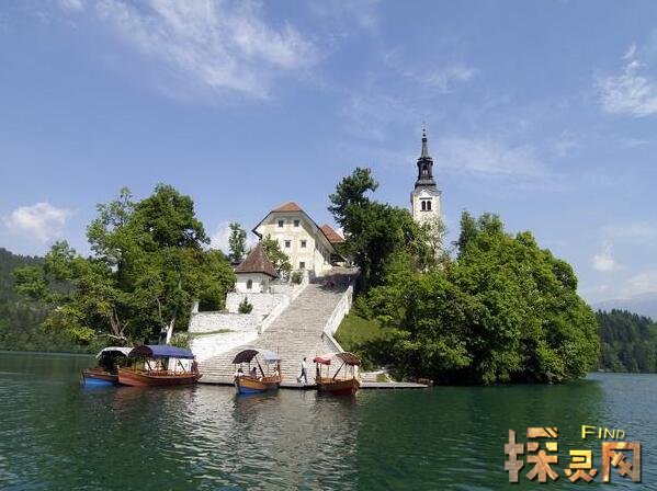 布莱德湖最具辨识度的建筑是湖中央岛上的圣母升天教堂,是当地新人举行婚礼的首选。而这座教堂可谓是沉浸在浪漫的传统中:根据当地的传说,如果丈夫能牵着新娘从码头走99级台阶进入教堂,婚姻就会幸福美满。
