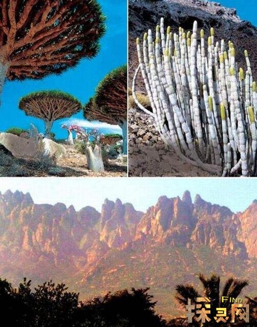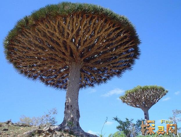 这个岛上最著名的植物应该就是龙血树了,这是世界上唯一的一种,没有分支。生长在高山上的龙血树有着巨大而规则的树冠。当它的皮肤受损时,它会分泌红色液体,然后在其表面形成红色晶体。当地人说,在古代,两兄弟发生争执,留下的血形成了龙血树,而在欧美,两条龙在岛上争斗,滴落的龙血长成龙血树。