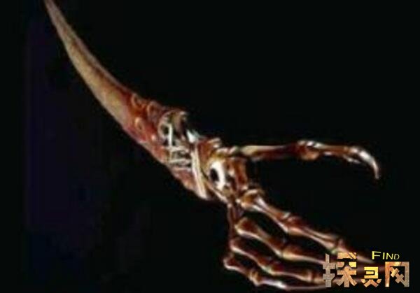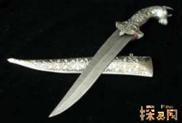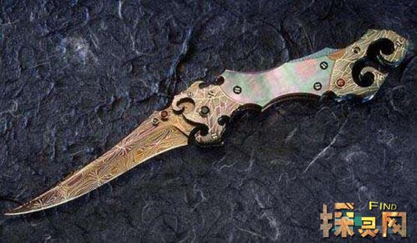 这把刀是世界上最帅的刀。它是14世纪意大利一个疯狂的铁匠铸造的。他把妻子的右手砍下来做成把手,然后把儿子的肋骨做成刀刃,把自己的小腿骨做成把手,送给当时的债主。三天后,债主疯了,把全家都烧了。据说后来拿到这把刀的人都疯了,全家都死了。