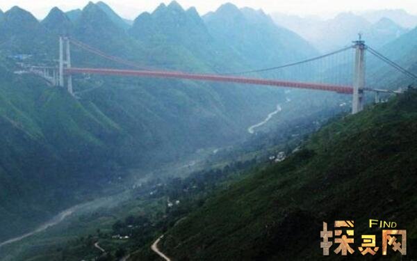 坝陵河大桥位于中国贵州省关岭县。坝陵河大桥是中国第二高的悬索桥,也是第三高的直接公路桥。坝陵河大桥跨度1088米,高度370米。巴陵河大桥的另一个壮观之处是其中一个中塔的高度达到了令人震惊的457米。