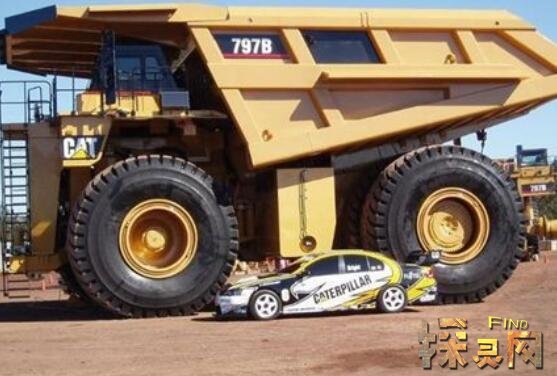 卡特彼勒797是世界上最大的卡车,总高23英尺,宽47.5英尺。当翻斗升起时,它可以达到50英尺。最令人惊讶的是,它的V24发动机功率高达3400马力。每个轮胎都有13英尺高,单个轮胎就要3万美元。全车最低售价343万美元。