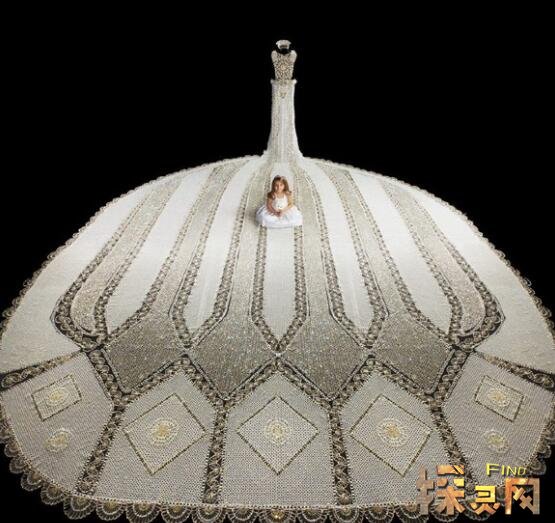 看到上面这张图,你会觉得很震撼。真的很漂亮。这件婚纱重达181公斤,是世界上最重的婚纱。至于它的起源,明尼苏达州的艺术家盖尔贝(Gail Be)花了将近三年的时间才完成,所以这是一部呕心沥血的作品。