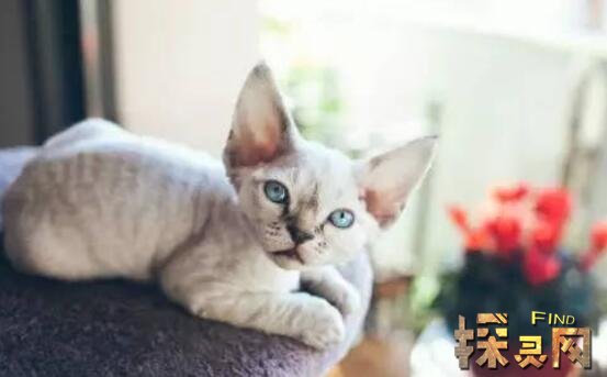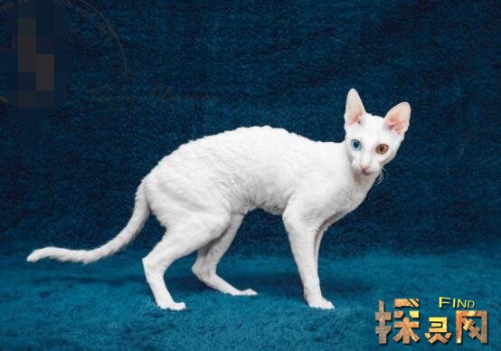 康沃尔卷毛猫比德国卷毛猫大一点,成年体重八斤以上。这只猫来自英国,它最大的五官是它的大眼睛和大耳朵。与其他猫相比,它们在智商上更聪明,在行为上与狗的性格非常接近,非常活泼好动。