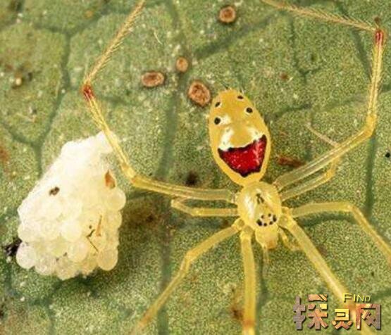 看到这只蜘蛛是不是觉得很可爱?对,它叫笑脸蜘蛛。它的肚子上有一张笑脸,看到它你的心情好像就亮了。这种蜘蛛完全没有毒性,你放心。
