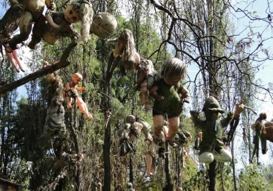 洋娃娃岛位于墨西哥。关于它的名字由来的故事,很久以前一个小女孩不小心淹死在这个岛的湖里。后来,为了悼念这个小女孩的去世,家家户户都把娃娃拼凑起来,挂满了全岛。后来,随着时间的推移,这些娃娃已经腐烂了。他们中的大多数没有眼睛和手,恐怖笼罩着整个岛屿。