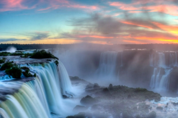 伊瓜苏瀑布被称为南美第一奇观。它不仅是南美洲最大的瀑布,也是世界五大著名瀑布之一。伊瓜苏在当地瓜拉尼语中的意思是伟大的水。除了瀑布,伊瓜苏瀑布所在的伊瓜苏国家公园也是许多濒危脆弱动植物的栖息地。